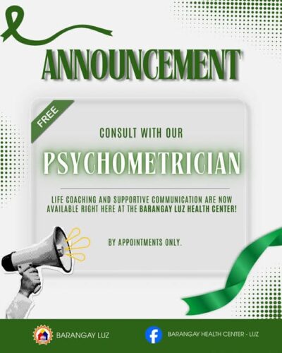 A licensed Psychometrician is now offering mental health services in Barangay Luz, focused on:β¨ Life…