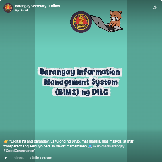 We will not only have our own website but also use an IT platform called Barangay Integrated System or BIS, where you can access our Barangay services online.