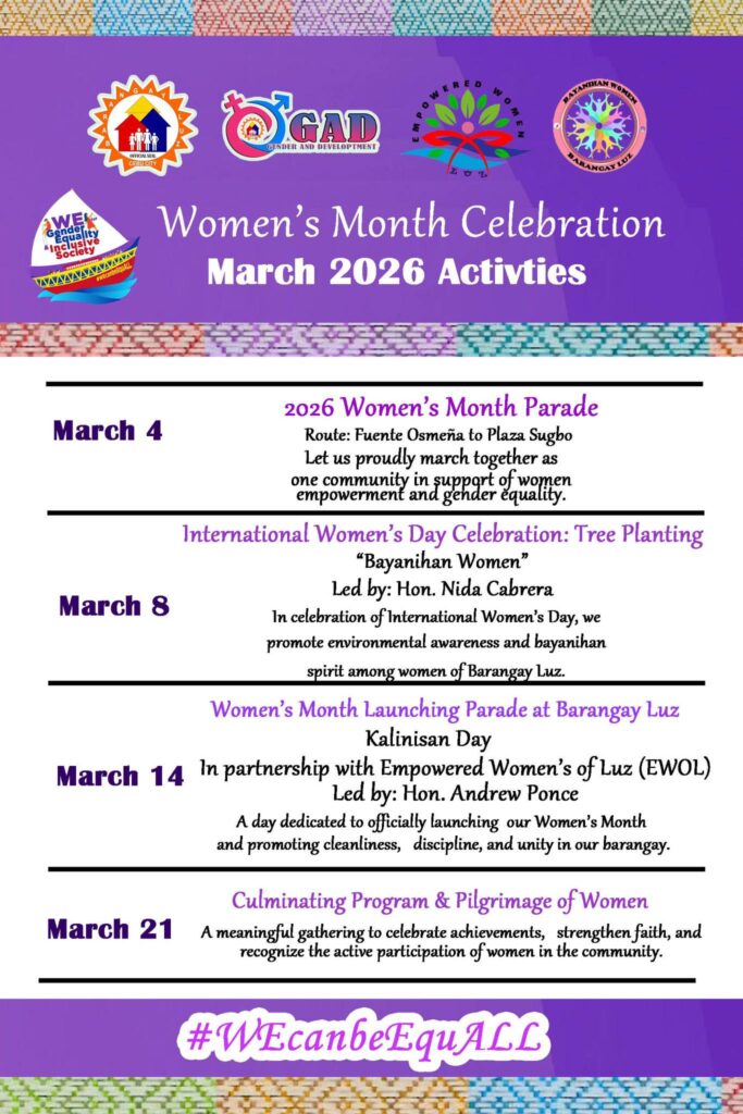 💜 Let us all join and participate as we celebrate the invaluable role of women in building a stronger, united, and progressive Barangay Luz.