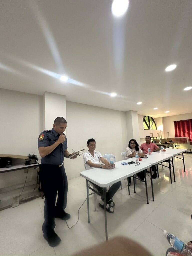 Nagpahigayon og usa ka importante nga miting ang mga lokal nga opisyal ug kapulisan aron hisgutan ang kasamtangang kahimtang sa peace and order sa atong komunidad. Gipangulohan kini ni City Councilor Hon. Paul Labra, kauban ang kapulisan gikan sa Police Station 4 nga si Major Gingoyongon.