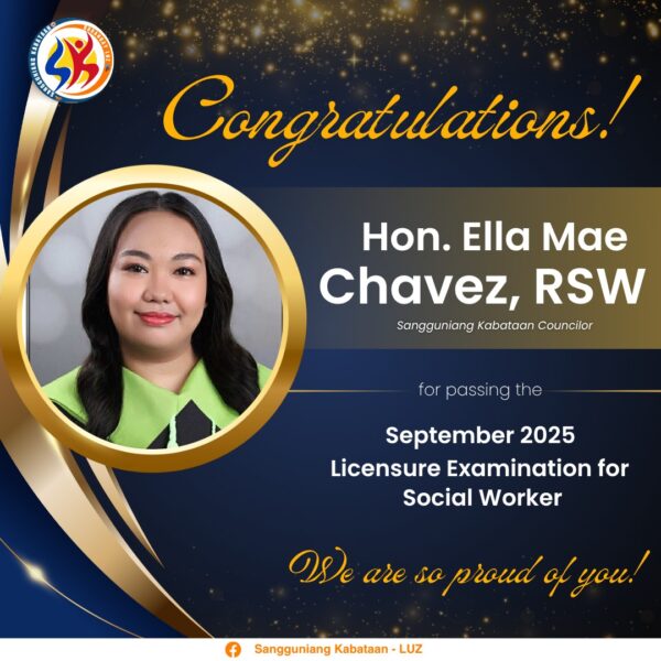 Thank you very much for trusting your barangay officials and the entire workers of Barangay Luz. It is always our pleasure to serve you.